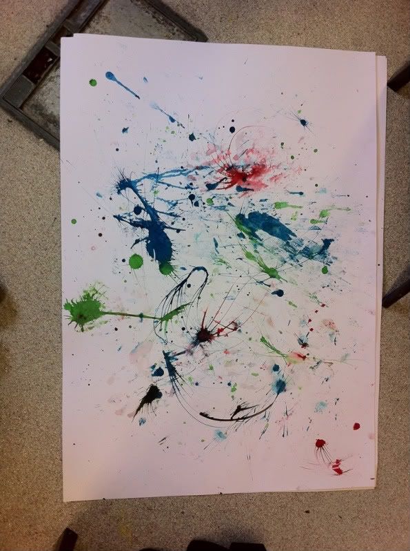 It's really helping me to loosen up with my work, and I really went crazy the other evening with it. I started to make a massive mess on some paper and then create a narrative from it. It was really liberating and I enjoyed it very much! I shall post photos when I get home...