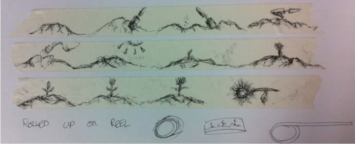 I was thinking of drawing a progressive story on the tape and then rolling it up. That way, as the tape is unrolled and used, the user witnesses the progression.